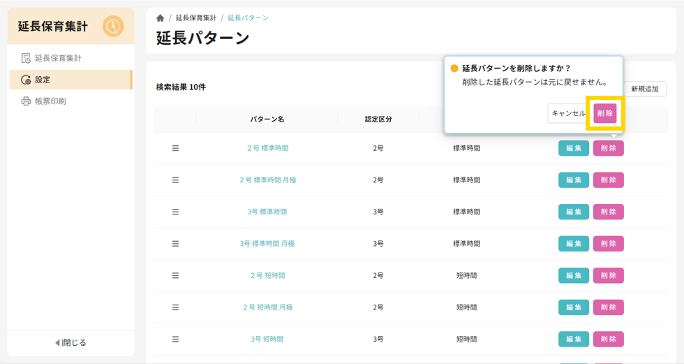 - 確認メッセージが表示されますので、 削除 をクリックします。