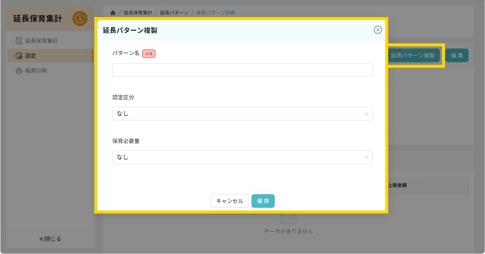 - 既存のパターンを複製して設定する場合は延長パターン複製をクリックします。
